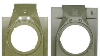 Этот момент будет одинаков для всех УЗТМовских башен - аналогично выглядит левый борт на башнях из Лешан, Нижнекамска, Невеля, Поклонной горы, Новомосковска. И всех остальных – башен этого завода сохранилось немало, не буду утомлять их полным списком.