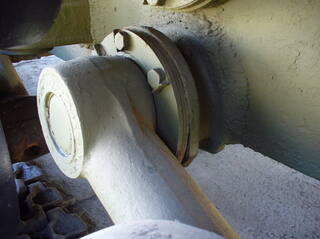 Дульный тормоз собирается по линии литьевого шва, собирается хорошо, имеет черты (два следа среза литьевых прибылей) часто встречающиеся на танках с корпусами и башнями УЗТМ.