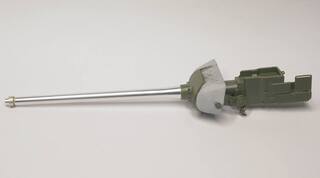 Станок можно собрать в двух положениях - пулемет установлен по-походному, или на прямую наводку (параллельно крыше башни) и поднятом под углом 45 градусов - для этого отлиты две одинаковые детали уравновешивающего механизма, но с разным положением штоков и пружин на них.